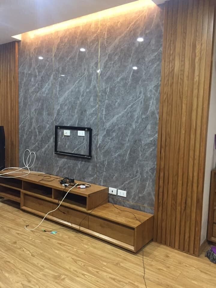 Vách Tivi bằng nhựa lam sóng kết hợp tấm PVC vân đá