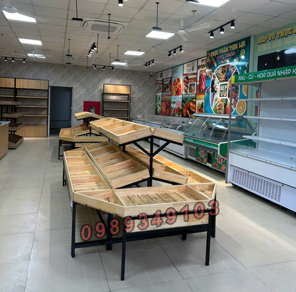 Kệ Trưng Bày Rau Củ Quả Siêu Thị Khung Sắt Gỗ MDF Cao Cấp | Giá Tại Xưởng 2026