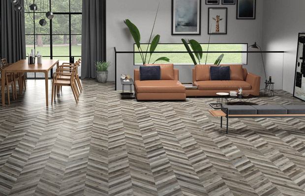 Ốp sàn gỗ xương cá kiểu hiện đại
