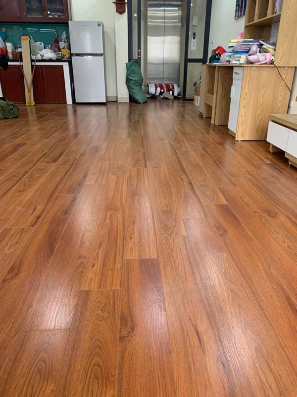 Báo giá hoàn thiện đã bao gồm: vật tư sàn gỗ, nhân công lắp đặt, xốp lót nilon 2mm, nẹp kết thúc nhựa tại cửa. Chưa bao gồm: phào chân tường, nẹp nối kỹ thuật. Phào chân tường nhựa hoặc laminate tính riêng từ 35.000đ/md.