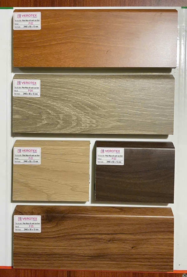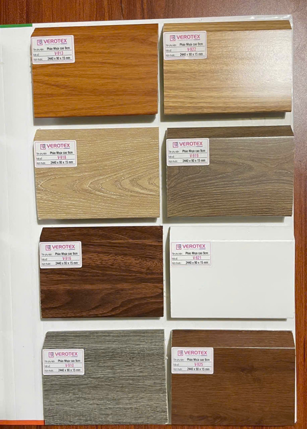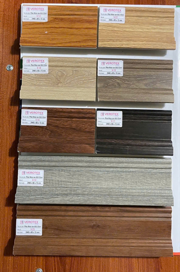 - Phào chân tường: Phào PVC cao 8cm, Phào gỗ MDF cốt xanh - phào nhựa cao 9cm