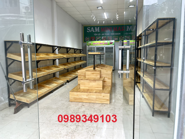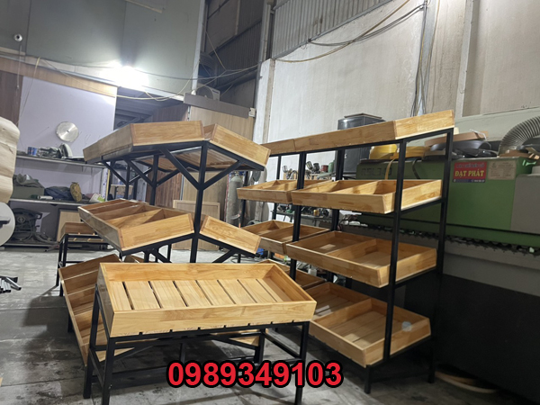 Kệ trưng bày rau củ quả bằng khung sắt gỗ cao su